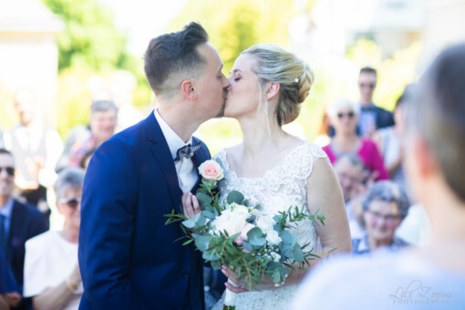 Nous avons accompagné Lise et Alexandre lors de leur magnifique journée de mariage. Exceptionnellement, la cérémonie à la mairie a été réalisée à l’extérieur, la météo étant extrêmement clémente.   Puis nous les avons suivi à l’église et à leur vin d’honneur pour immortaliser ces précieux moments. Quel plaisir de couvrir ce mariage !