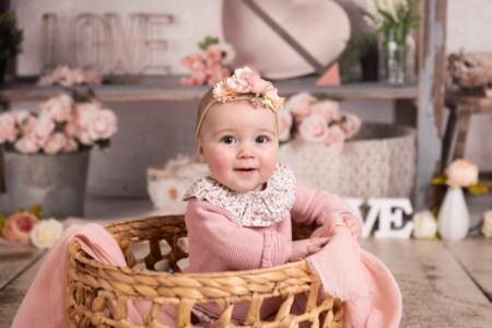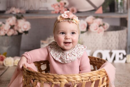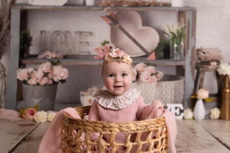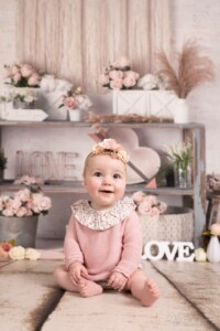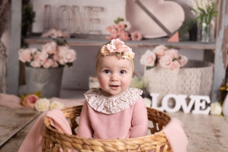 Le fond LOVE et ses fleurs délicates ont créé une ambiance douce et poétique, parfaite pour capturer sa spontanéité.