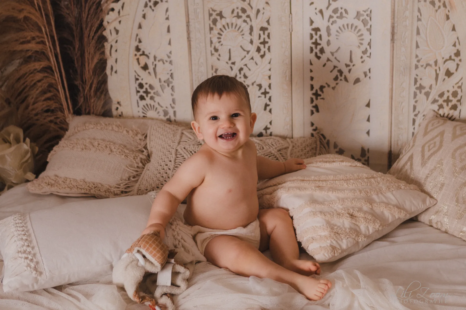 Nous avons ressorti les mêmes peluches que celles utilisées lors de sa séance naissance, il y a un an tout juste. Un magnifique clin d’œil au temps qui passe, créant des souvenirs chargés d’émotion et de nostalgie. Oscar a bien grandi, mais il est toujours aussi craquant au milieu de ses copains en peluche.