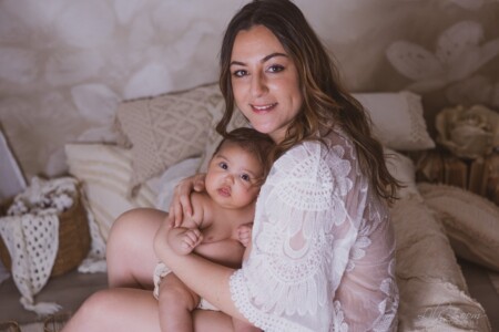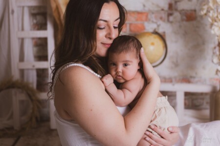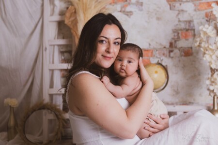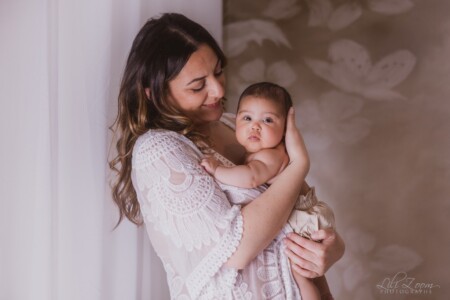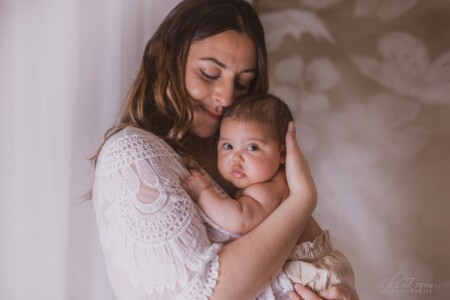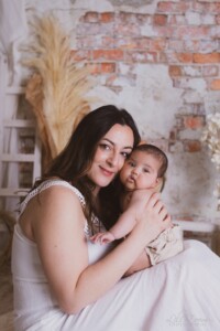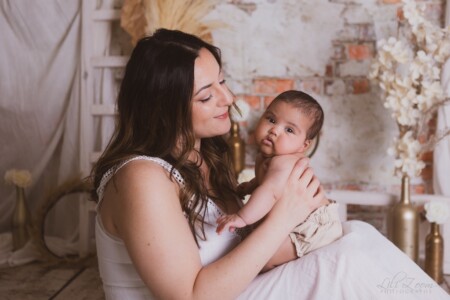 La séance Maman & Moi, dans un écrin bohème, est une véritable bulle hors du temps : une lumière douce, des tenues légères aux matières naturelles, une atmosphère chaleureuse où l’amour et la tendresse s’expriment sans filtre.